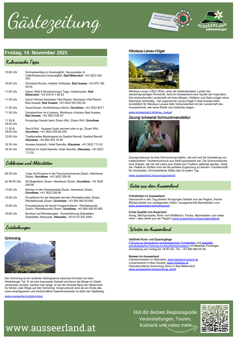 Gästezeitung des TVB Ausseerland Salzkammergut für Freitag, 14. November 2025
