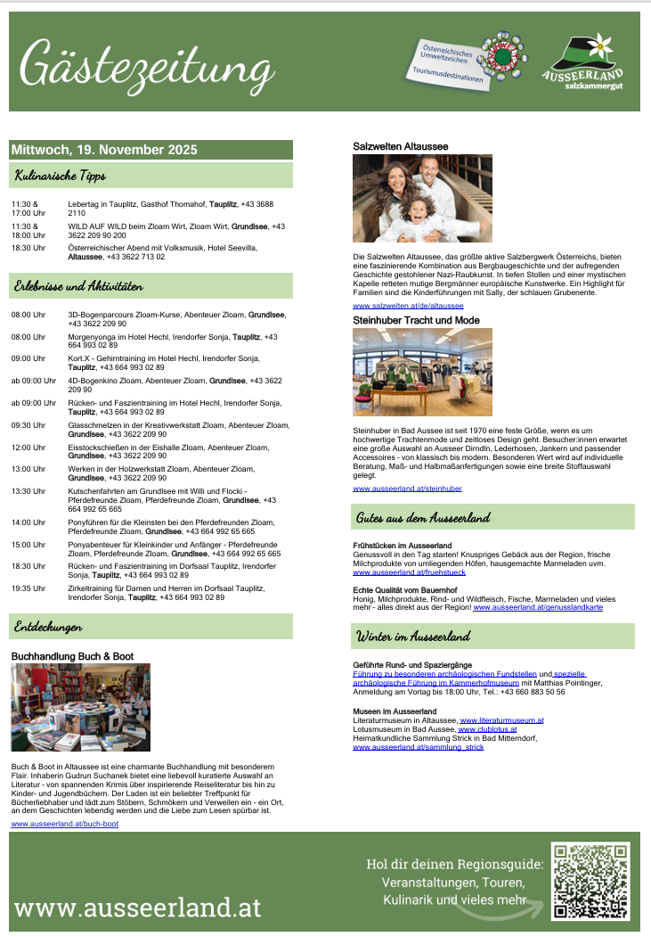 Gästezeitung des TVB Ausseerland Salzkammergut für Mittwoch, 19. November 2025