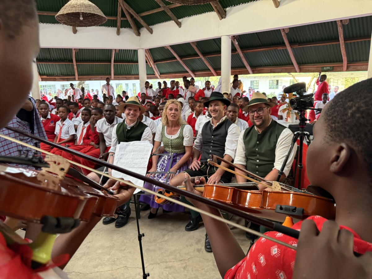 Auf ihrer Reise durch das „Safariland“ Tansania erlebten die Vollblutmusiker faszinierende Menschen vom Stamm der Massai und musizierten mit ihnen, besuchten das beeindruckende Kranken- und Gesundheitszentrum von der Ausseerin Dr. Cornelia Wallner-Friese, gaben Workshops in Geige und Gesang. In den Nationalparks konnten sie Elefanten, Giraffen, Löwen und Co aus nächster Nähe beobachten und bestaunen.