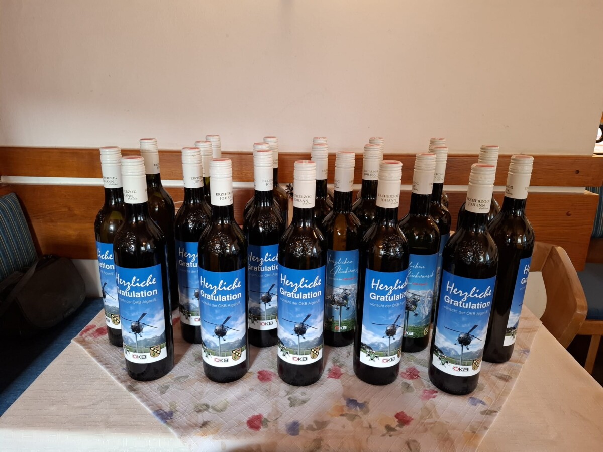 Als Zeichen der Wertschätzung erhielt jeder Jubilar eine eigens gebrandete Flasche Wein des ÖKB Ortsverbandes Aigen im Ennstal.