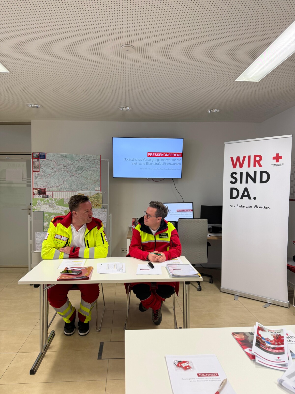 Liezen – Im Rahmen einer Pressekonferenz des Roten Kreuzes im Bezirk Liezen präsentierten Mario Lindner, 1. Stv. Bezirksstellenleiter, und Dr. Thomas Wegscheider, Rot-Kreuz Arzt der Ortsstelle Altenmarkt/Großreifling, heute das einstimmig vom Roten-Kreuz-Bezirksausschuss beschlossene Konzept für ein „strategisches Notarztsystem“ für die Steirische Eisenstraße.