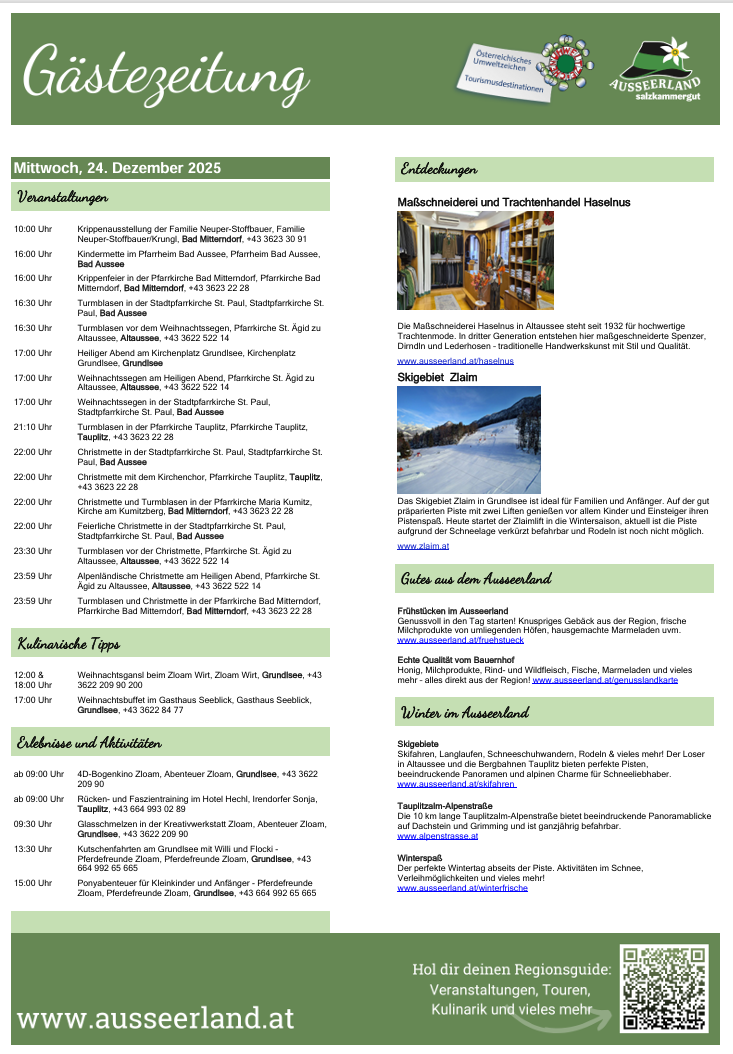 Gästezeitung des TVB Ausseerland Salzkammergut für Mittwoch, 24. Dezember 2025