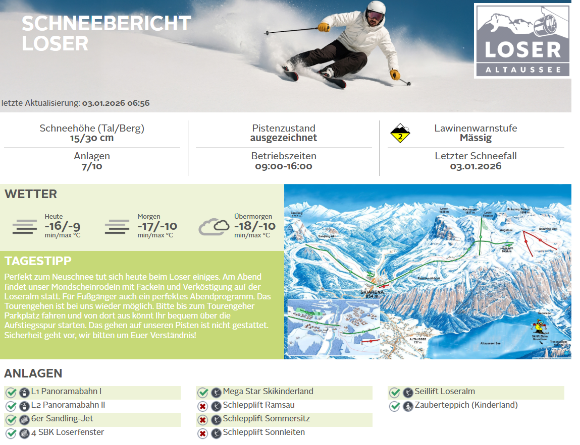 Am Fuße des Loser wurde nun ein neuer Flying-Fox Parcour im Kletterpark fertiggestellt. Die neue Flying-Fox besteht aus 4 Seilrutschen und garantiert maximale Sicherheit für kleine und große Überflieger. Dieses erweiterte Angebot bietet jetzt noch mehr Fun & Action, Spaß und Nervenkitzel für Kinder ab 7 Jahren, Jugendliche und Erwachsene und natürlich auch für sportliche Senioren.