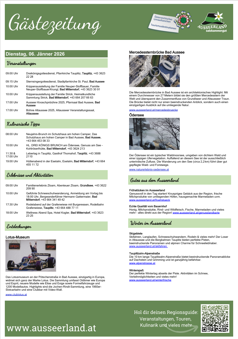 Gästezeitung des TVB Ausseerland Salzkammergut für Dienstag, 06. Jänner 2026