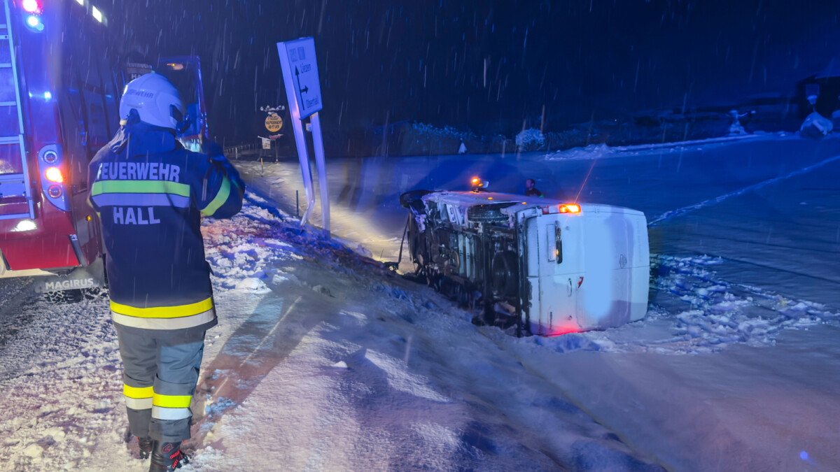 Die Feuerwehr Hall sicherte die Unfallstelle ab und führte die Bergung des Fahrzeugs mittels Seilwinde durch. Auslaufende Betriebsmittel wurden kontrolliert, die Fahrbahn gereinigt und für den Verkehr wieder freigegeben.