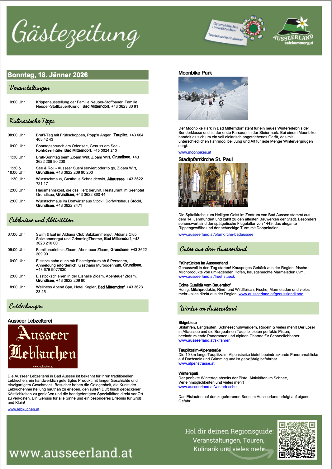 Gästezeitung des TVB Ausseerland Salzkammergut für Sonntag, 18. Jänner 2026