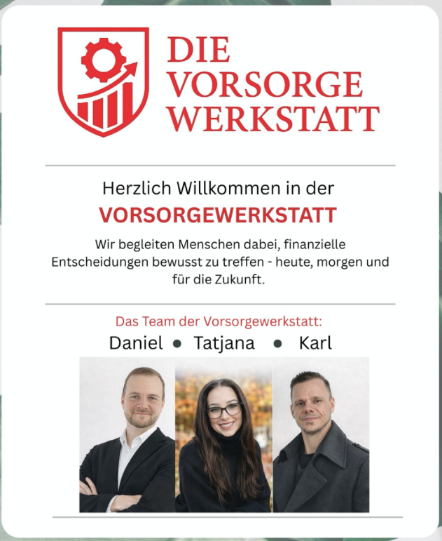 Am 15. Januar 2026 eröffnete das Team um Daniel Illmayr, Karl Fluch und Tatjana Gudalovic offiziell die Vorsorgewerkstatt und schuf damit eine neue Anlaufstelle für ganzheitliche Beratung rund um Vorsorge, Kapitalaufbau und Absicherung. Mit zahlreichen Besucherinnen und Besuchern war die Eröffnung ein voller Erfolg und stieß auf großes Interesse.