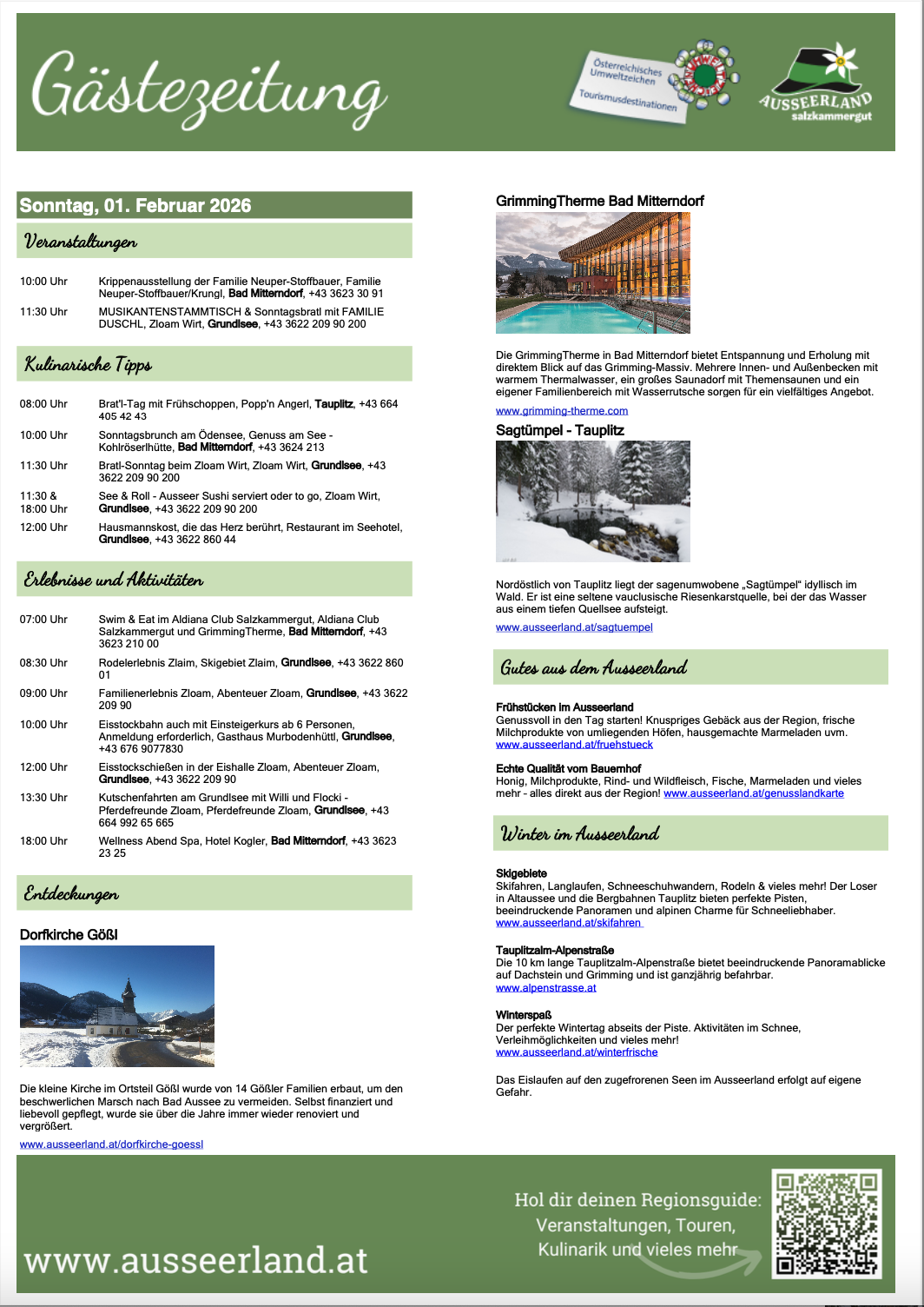 Gästezeitung des TVB Ausseerland Salzkammergut für Sonntag, 01. Februar 2026