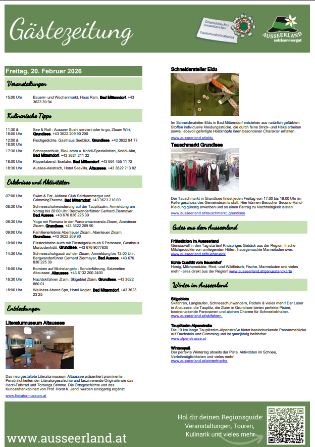 Urlaub ganzjährig möglich! Ob Kurzurlaub oder ausgedehnte Ferien, fühlen Sie sich einfach wohl im Gasthof Leuner in Altaussee und tanken Sie Kraft für Ihren Alltag.