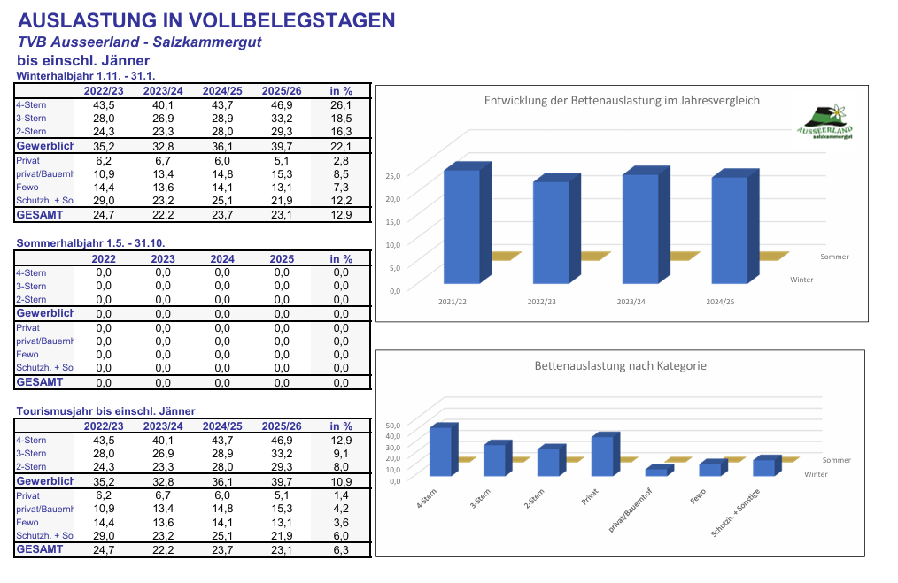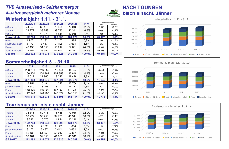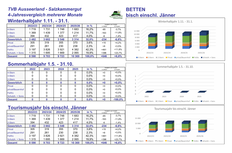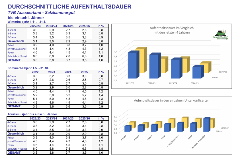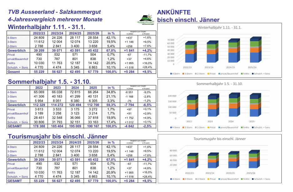 Auch die Region Ausseerland-Salzkammergut weiterhin am richtigen Weg und mit steigenden Zahlen. Hier die Übersicht: