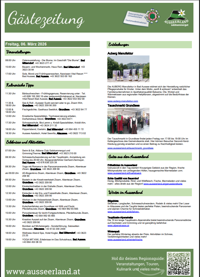 Gästezeitung des TVB Ausseerland Salzkammergut für Freitag, 06. März 2026